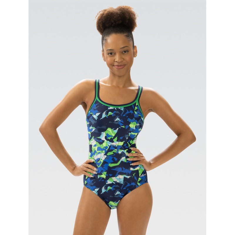 Experience enhanced comfort with its fully lined construction, along with chlorine and pilling resistance to ensure a great feel all season long. Embrace a striking look with the all-over printed Implode Blue and Green DBX back suit. Dive into the water with confidence, as this environmentally conscious and performance-oriented swimsuit supports your competitive edge.