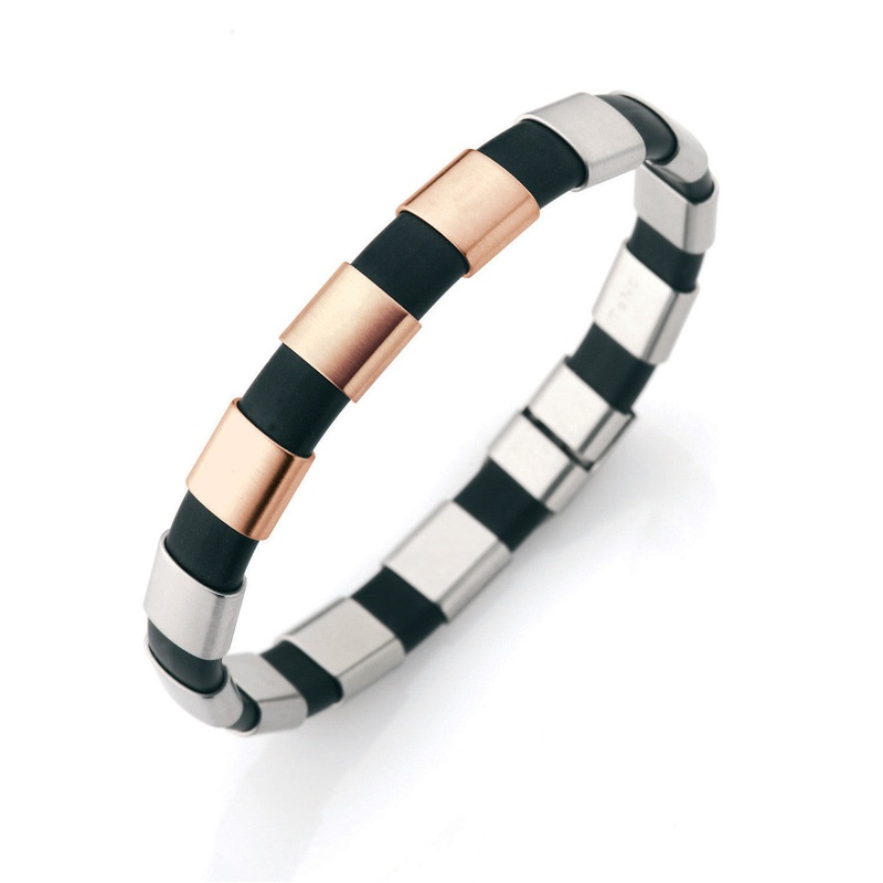 TeNo Stainless Steel Shikou Bracelet with Steel, Rubber and Three 18kt. Rose Gold Elements.
