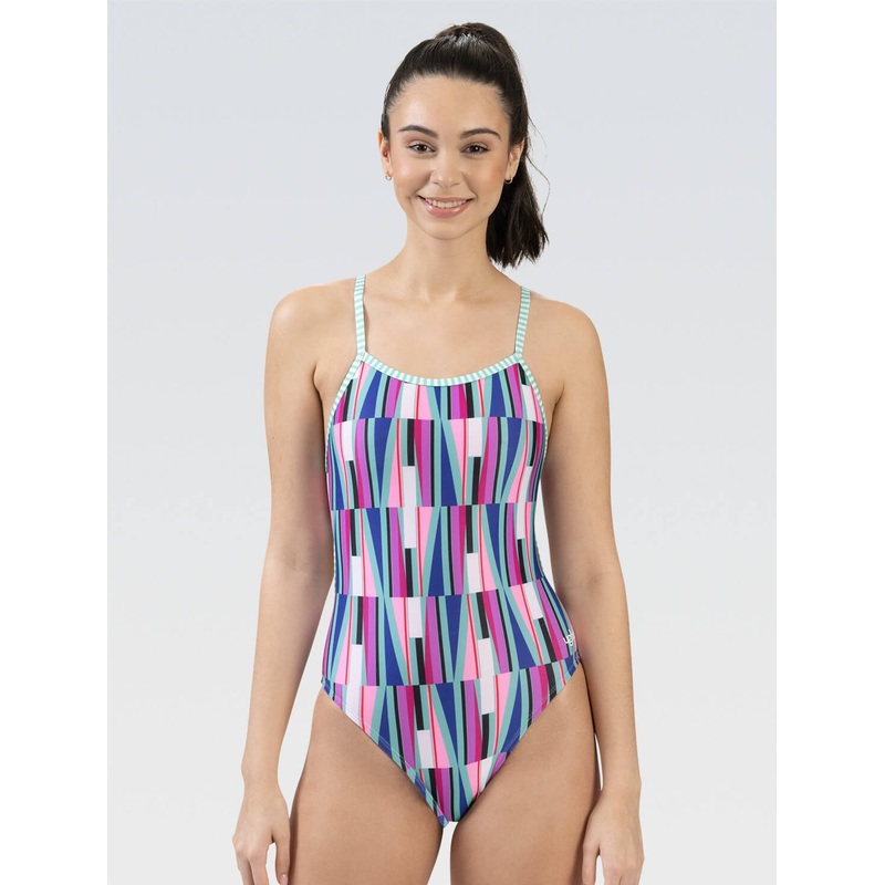You dont have to be first in your class to know this a top of the line practice suit. This one piece swimsuit has a high leg cut to maximize dexterity and performance when kicking, and its engineered to fit tightly to your body, allowing you glide through the water with ease. Its clearly a smart choice!