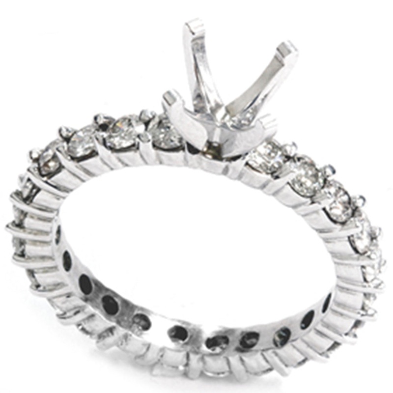This classic women’s eternity engagement ring mount features round brilliant cut vs natural diamonds that encircle the entire ring. All diamonds are set in solid 14k white gold. The mount is ready to fit a 1.00ct round, larger shapes and sizes are available. Email us for a quote. 1.50ct total diamond weight.
