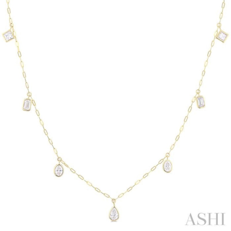 1 1/5 Ctw Bezel Set Mixed Diamond Cut Station Necklace in 14K Yellow Gold