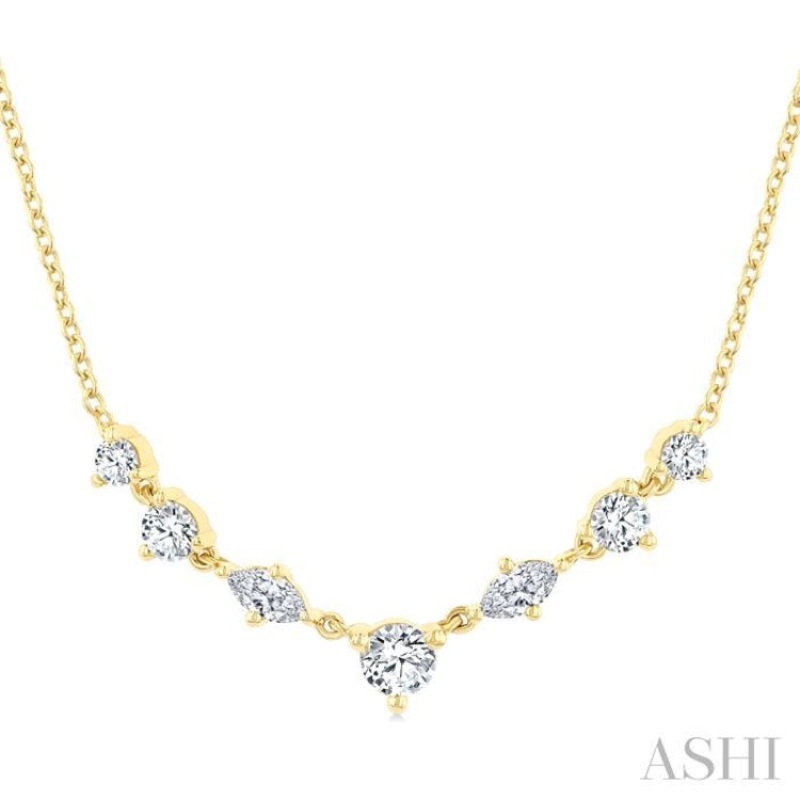 1/2 Ctw Marquise & Round Cut Diamond Necklace in 14K Yellow Gold