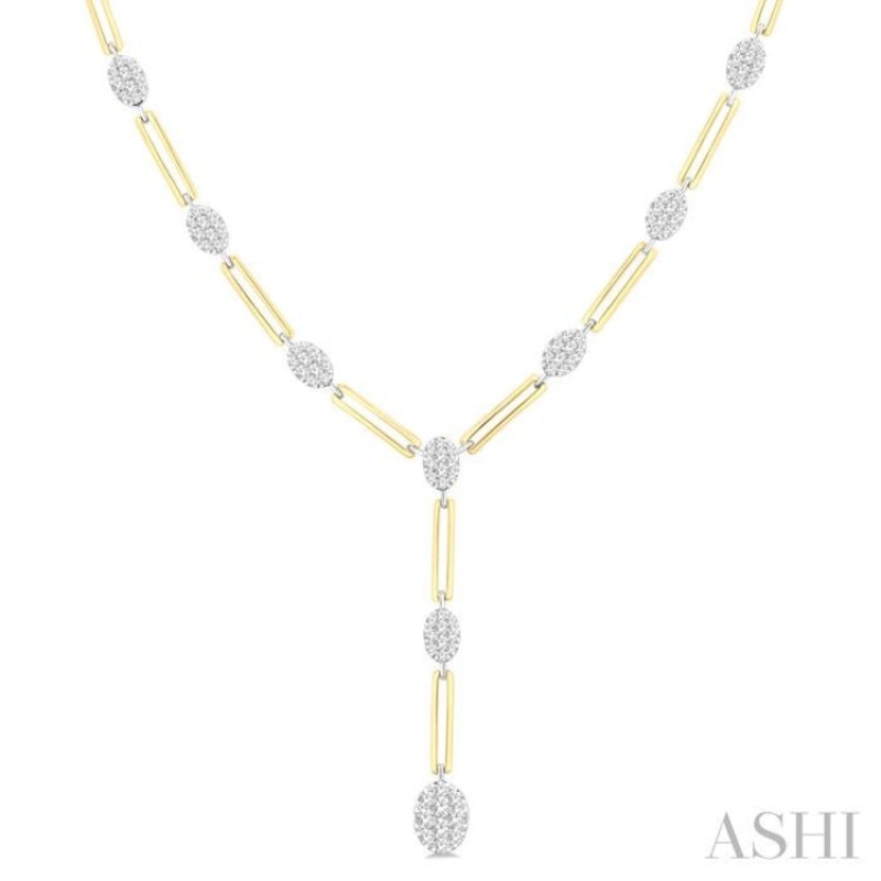 1 3/4 Ctw Lovebright Oval Shape Round Cut Diamond Paperclip Fashion Necklace in 14K Yellow and White Gold