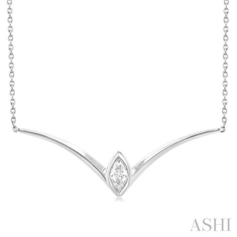 1/4 Ctw Chevron Bezel Marquise Cut Diamond Necklace in 14K White Gold