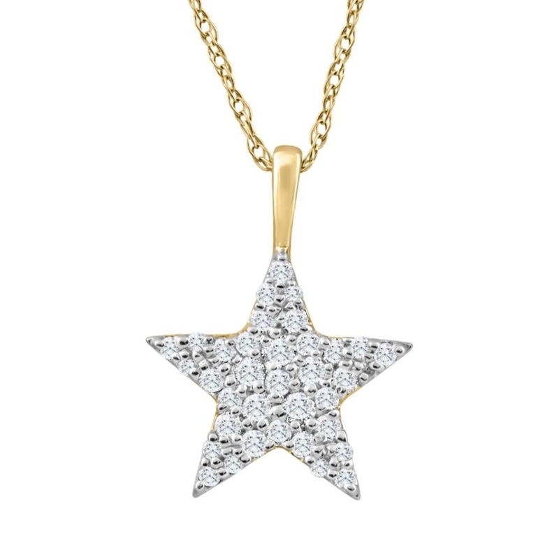 1/4Ct TW Diamond Star Pendant Yellow Gold Women’s Necklace 18″