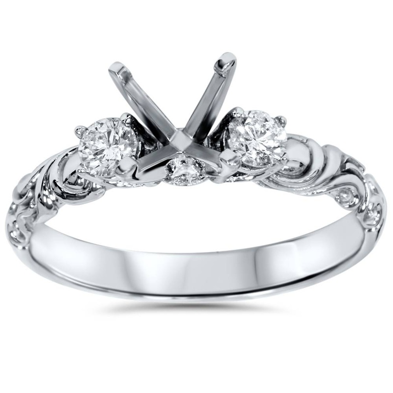 Ring setting features two 3mm round cut diamonds set in solid 14k white gold. We can supply round or square prongs up to 1.00ct