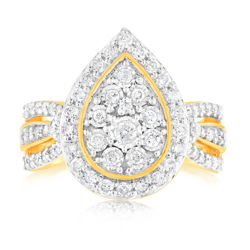 1 Carat Diamond Cluster Ring with 69 Round Brilliant Diamonds in 9ct Yellow Gold