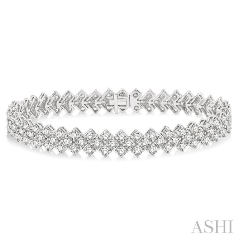 A drop-dead gorgeous diamond tennis bracelet, this offers instant appeal. It not only makes an elegant addition to a woman's jewelry box, but is also an outstanding anniversary or milestone event gift. The bracelet features closely knit Chevron links, deco