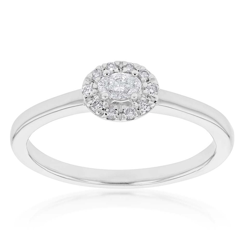 10ct White Gold 1/6 Carat Diamond Ring with Oval Centre and Halo