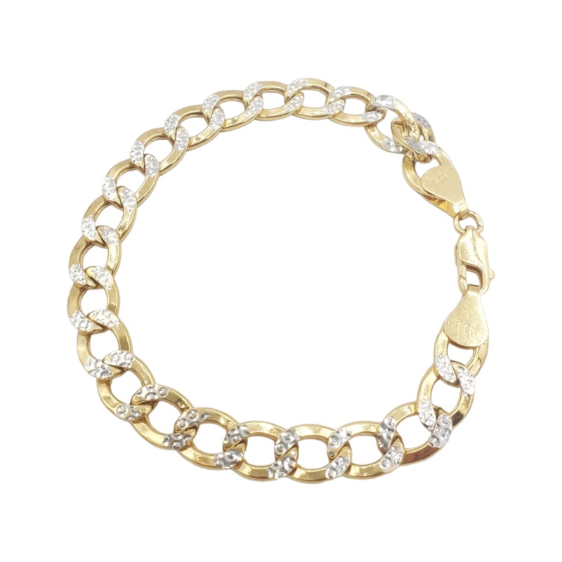 10K Gold- Hollow Cuban Link Diamond Cut (Pave)Bracelets Handcrafted with precise detail, high quality, Hollow Cuban Link Pave Bracelets. Available in a variety of widths and lengths- weight (grams) is provided once options are chosen. 100% 10K Gold. (For r