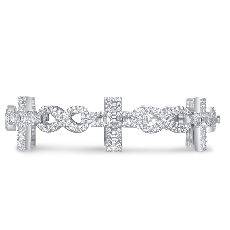 10k White Gold Round and Baguette Diamond Cross Bracelet 7.98 ctw