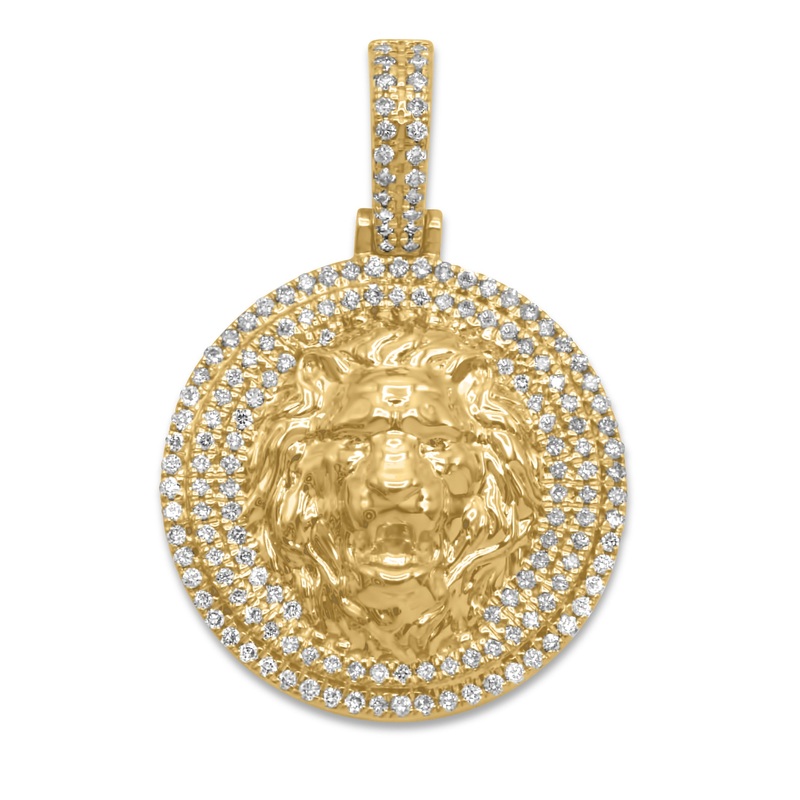 10k Yellow Gold Diamond Lion Head PendantWeight - 21.5gBail Size - 11.49mmLenght - 44.00mmWidth - 31.50mmTotal Carat Weight - 1.59 ctw