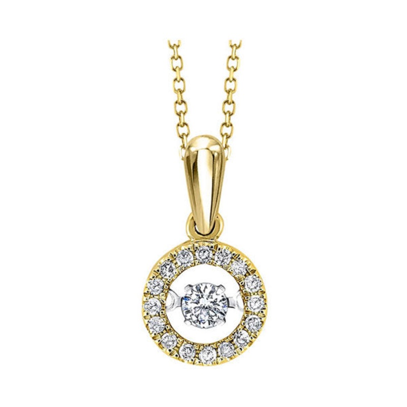 1/5ctw 10K Yellow Gold Diamond Rhythm Of Love Round Shape Pendant Set With One Round Full Cut Center Diamond And 14 Round Full Cut Side Diamonds