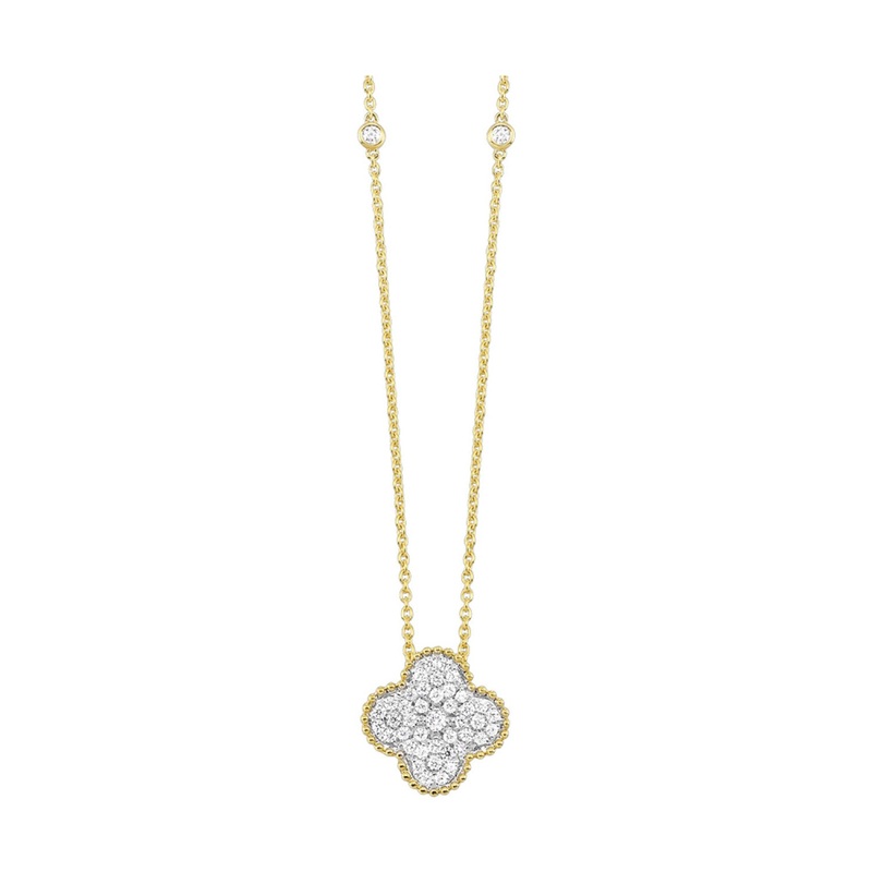10Kt Y/G Diamond Pendant Set with 41 RD FC Stones in a Clover Style Pendant