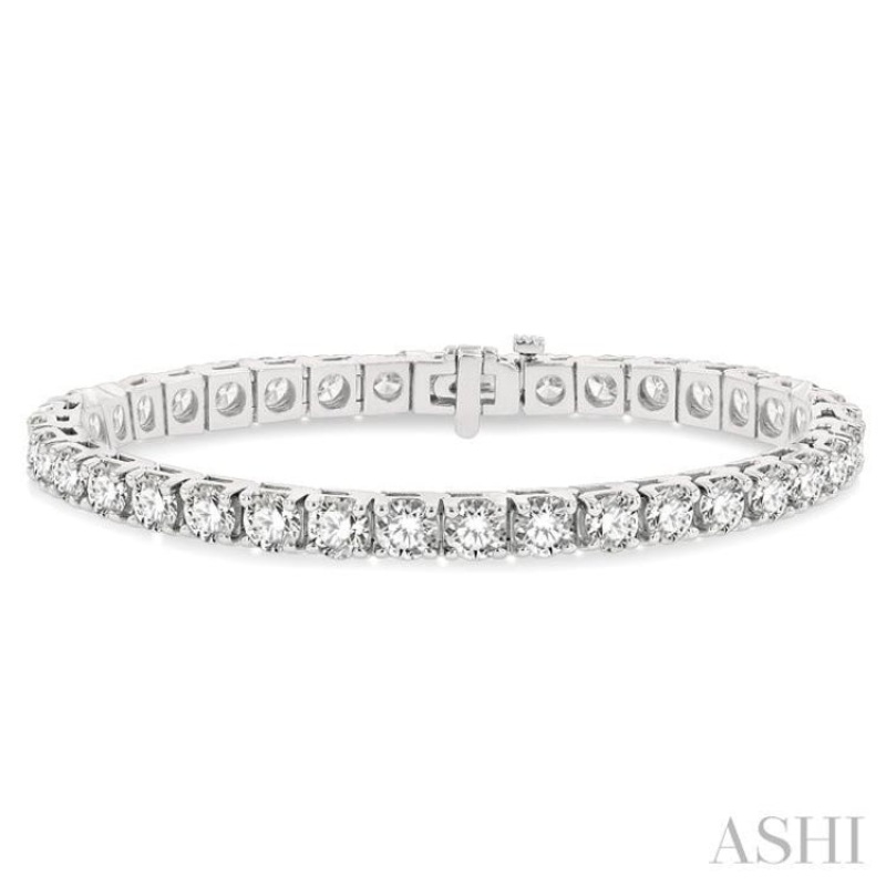 Gift this exquisite Diamond Tennis Bracelet to keep your remembrances lit in her heart always. Styled in gleaming 14 karat white gold, this square shaped tennis bracelet is adorned with a galaxy of 36 round cut diamonds in prong setting and fastens with a secure clasp. Total diamond weight is 12 Ctw.