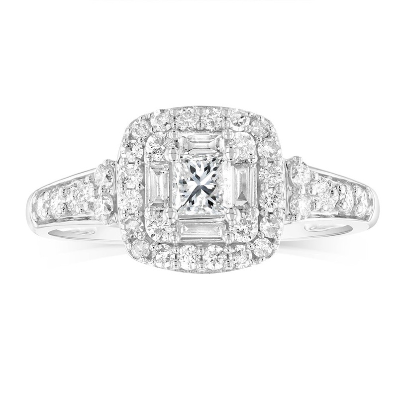 14ct White Gold 0.70 Carat Diamond Halo Solitaire Ring