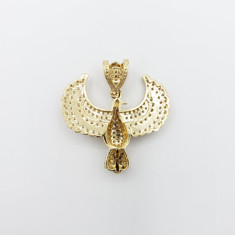 Handcrafted with precise detail, High Quality, 14K Gold Hawk Pendant with Cubic Zirconia Stones.