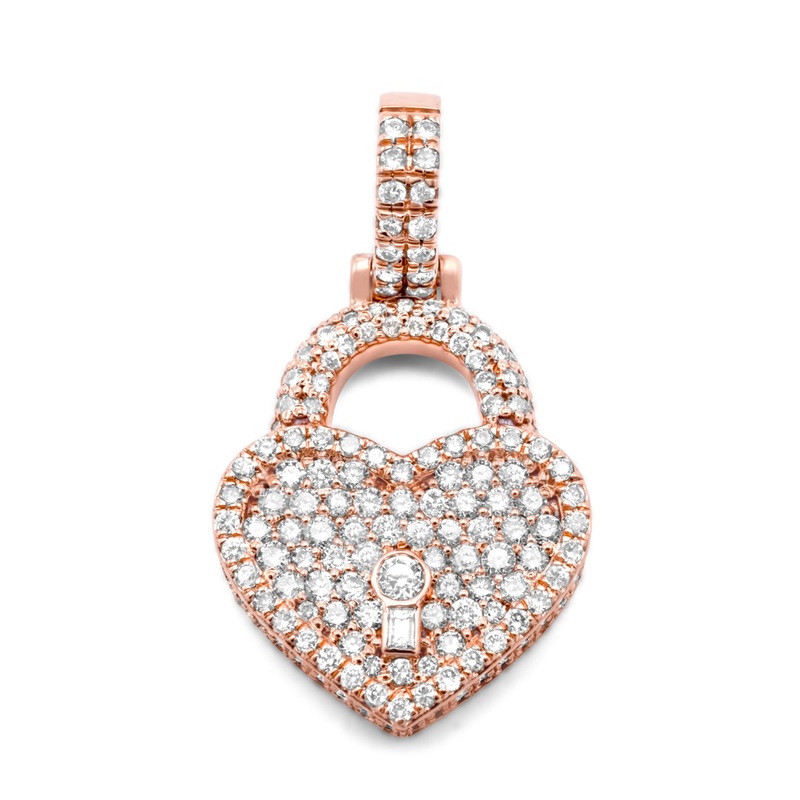 14k Rose Gold Diamond Heart Lock Pendant 1.35 ctw
