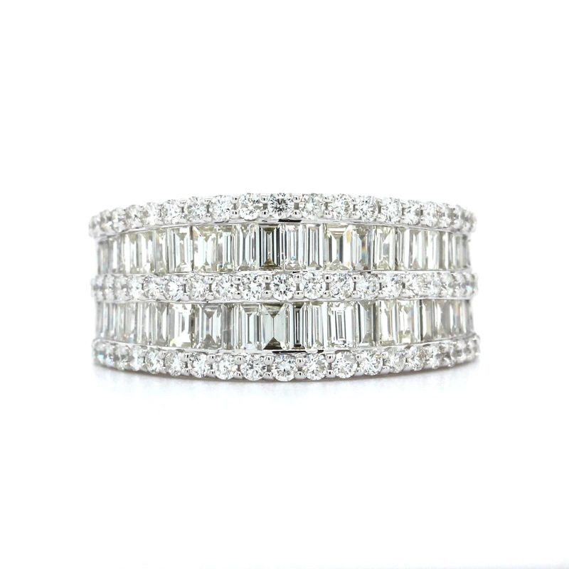 S99320165314K White Gold 5 Row Baguette and Round Diamond Band