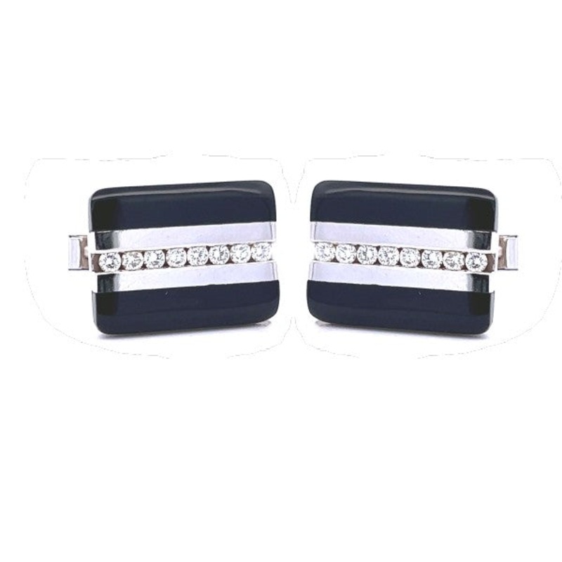 14K white gold cuff links with black onyx and round diamonds 0.67cttw