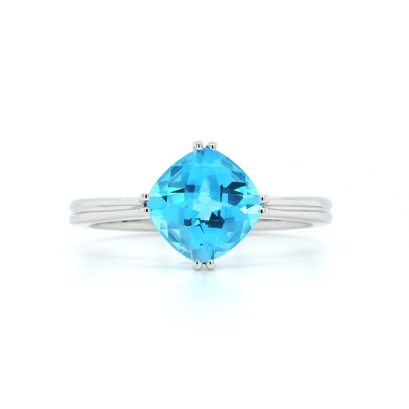 14K White Gold Cushion Blue Topaz Ring