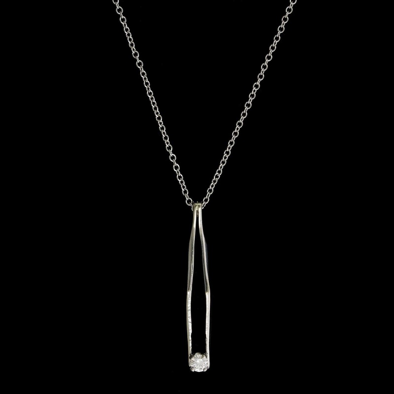 14K White Gold Estate Diamond Tweezer PendantThe pendant is designed as a pair of tweezers holding a full cut diamondDiamond weighing approx. .10cts., I/SILength 18"