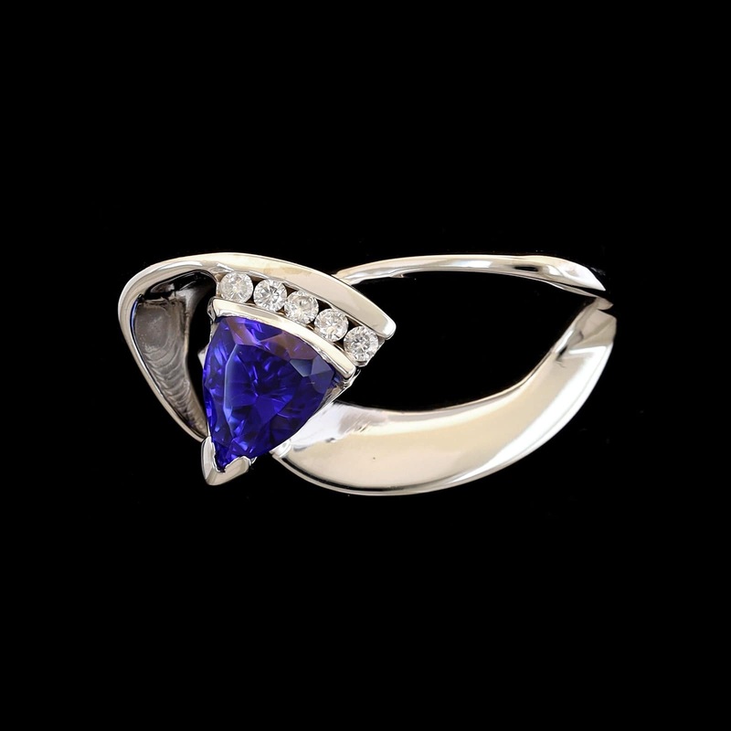 14K White Gold Estate Tanzanite and Diamond Slide PendantThe pendant is set with one triangle cut tanzanite weighing approx. 2.30cts.And five full cut diamonds, approx. .16cttw., H-I/SI2Length 1 1/4"