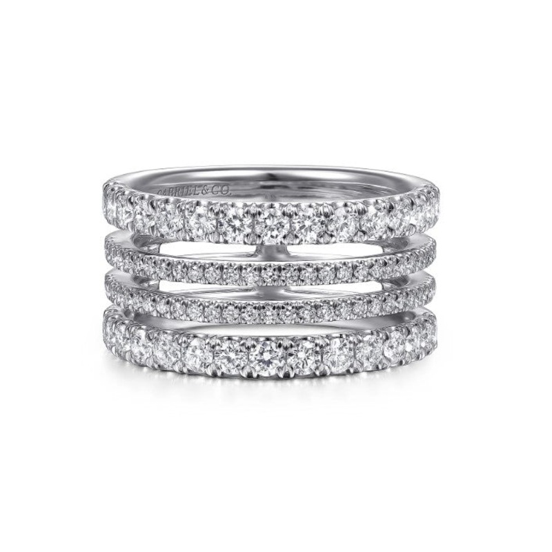 14K White Gold Four Row Diamond Ring 1.27cttw
