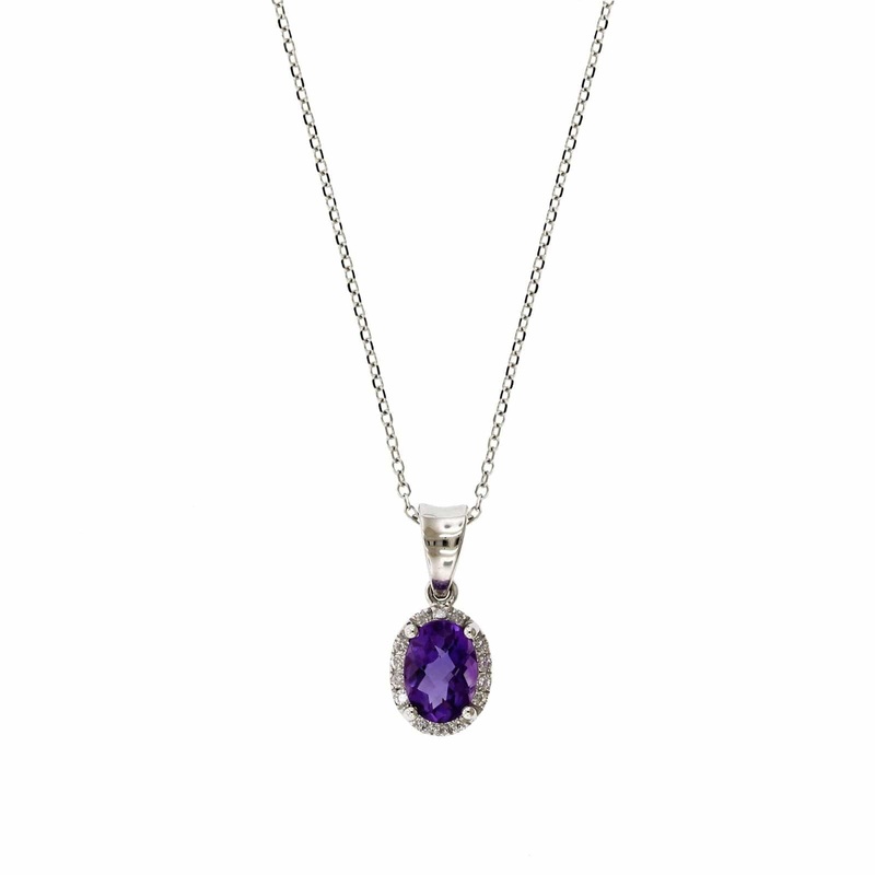 14K White GoldAmethyst; approx. 0.75ctw., oval 7x5mmDiamond; approx. 0.09ctw.18" cable chain, lobster clasp