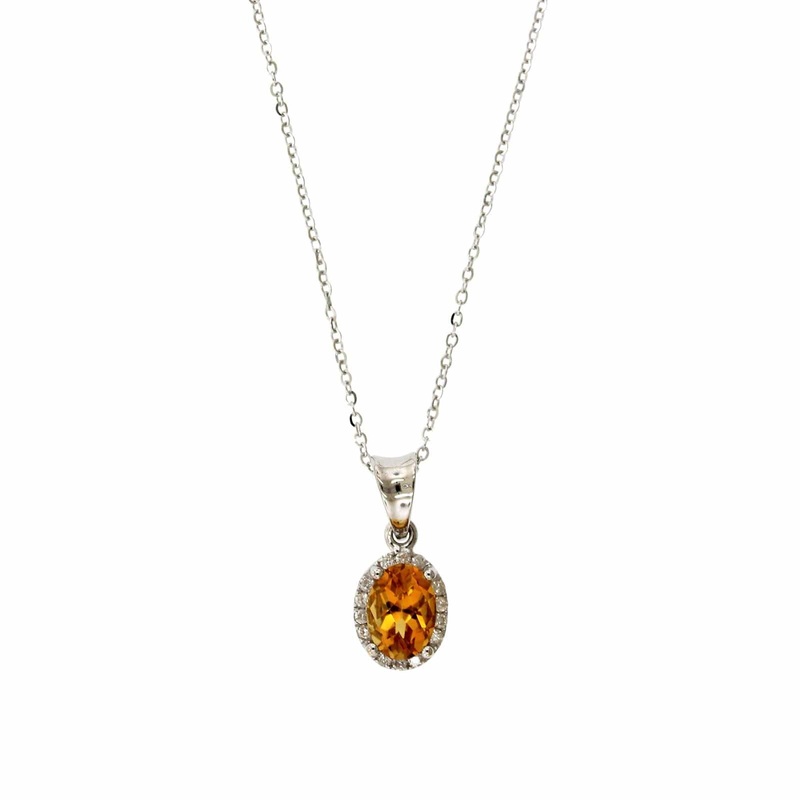 14K White GoldCitrine; approx. 0.86ctw., oval 7x5mmDiamond; approx. 0.09ctw.18" cable chain, lobster clasp