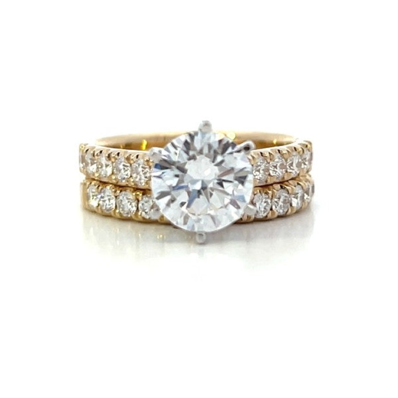 14K yellow gold wedding set with an engagement ring and a matching wedding band. 1.04cttw. Center stone sold separately.