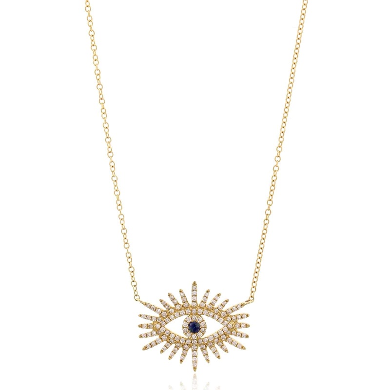 14k yellow gold starburst eye necklace with diamonds, 0.31 ctw. GH/VS.