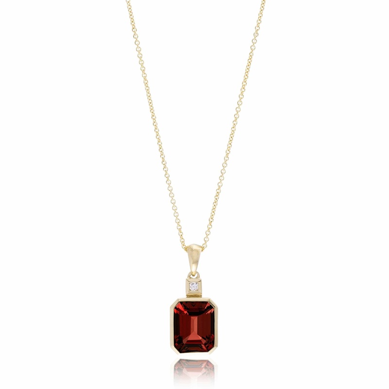 14k yellow goldGarnetDiamond approx. .03ctw16-18" adjustable chain