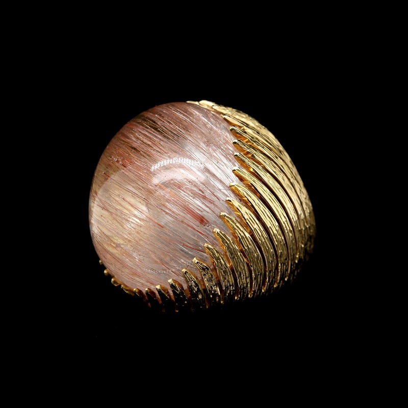 14K Yellow Gold Estate Rutilated Quartz Cabachon RingThe ring is set with one oval rutilated quartz measuring 25.00mm x 22.00mmSize 7 3/4