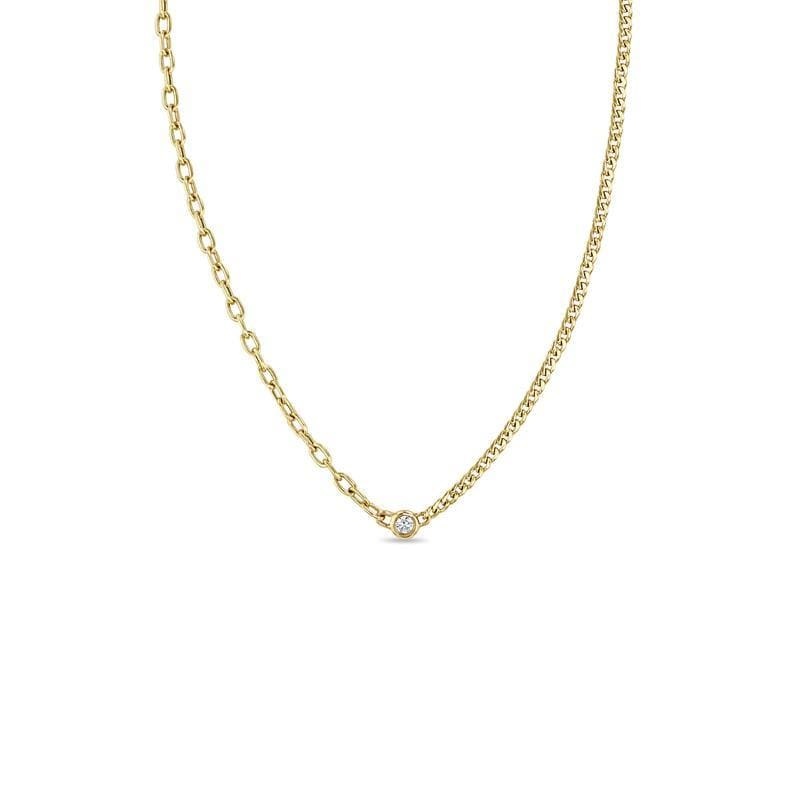 S99320693414K Yellow Gold Mix Chain Single Diamond Necklace