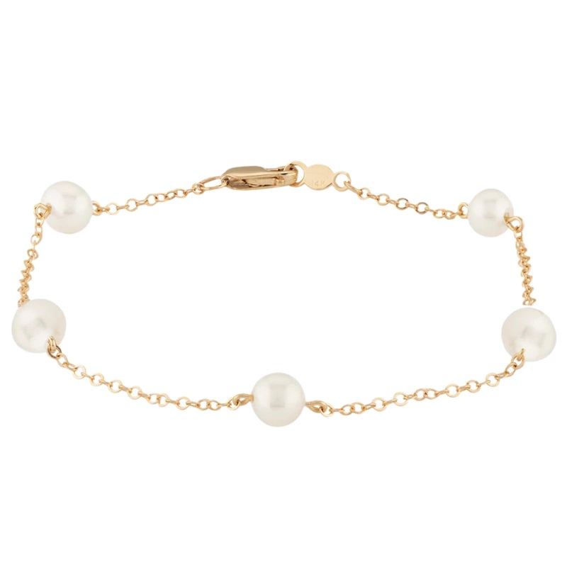 14k yellow gold bracelet featuring multiple pearls.14k yellow gold5mm7"