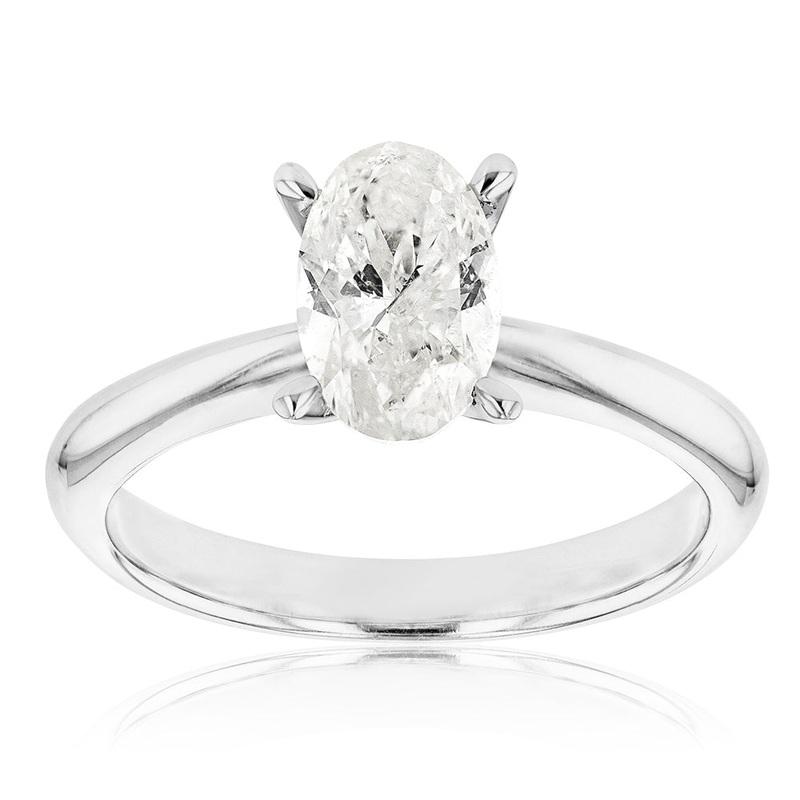 18ct White Gold 1.00 Carat Oval HJ SI Carat Certified Diamond Solitaire Ring
