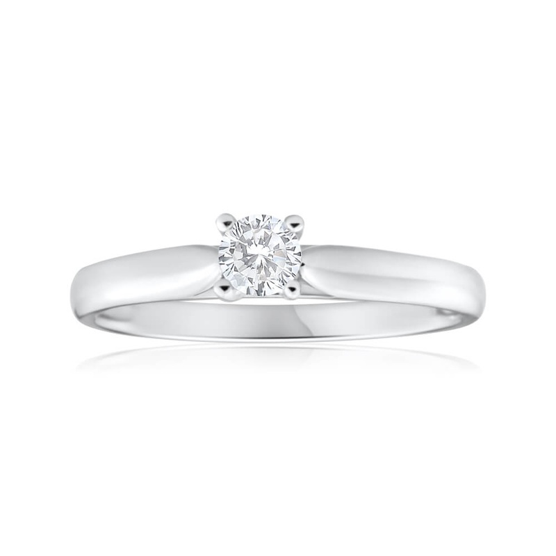 Make a special occasion even more significant with this 18-carat white gold diamond ring. The solitaire style is perfect for this elegant wedding band. The sparkly diamond is held in place by a four-prong setting. The 18-carat white gold compliments the diamond perfectly with its subtle shine.