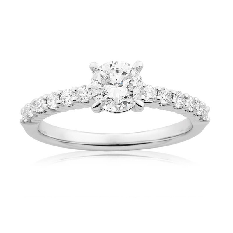 A real show stopping piece, this gorgeous 18ct White Gold Ring With 1 Carat Of Brilliant Cut Diamonds will have you falling head over heels. Featuring a sparkling 1 carat of brilliant cut diamonds that both pave the band and lie as a centre stone, this ring will glitter from every angle. A stunning engagement ring choice, 18 carat white gold is durable and timeless, meaning that you can cherish this ring for years to come.