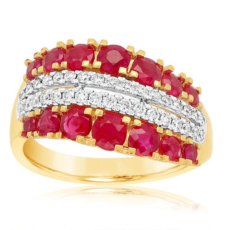 18ct Yellow And White Gold Diamond And Natural Ruby Ring