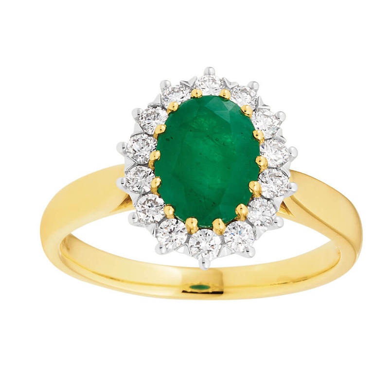 Be the first to review “18ct Yellow Gold Natural Emerald 8x6mm and Diamond Ring”
