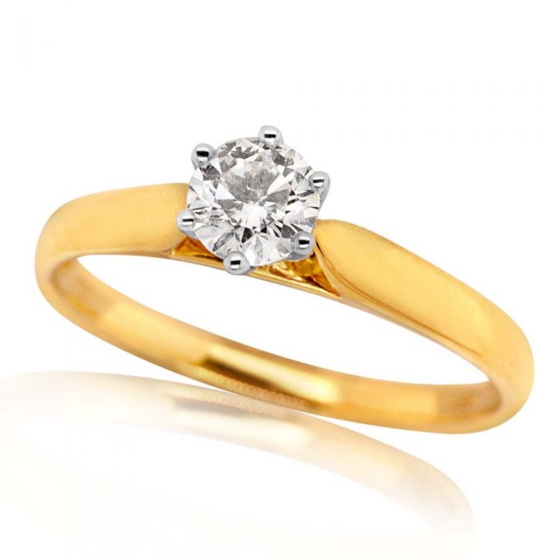 Get classic beauty with this 18ct Yellow Gold & White Gold Certified Diamond Ring With 0.5 Carats Of Diamonds. With a solitaire style, this ring showcases its half carat diamond flawlessly. The thick yellow gold band is a distinctive feature of this ring,