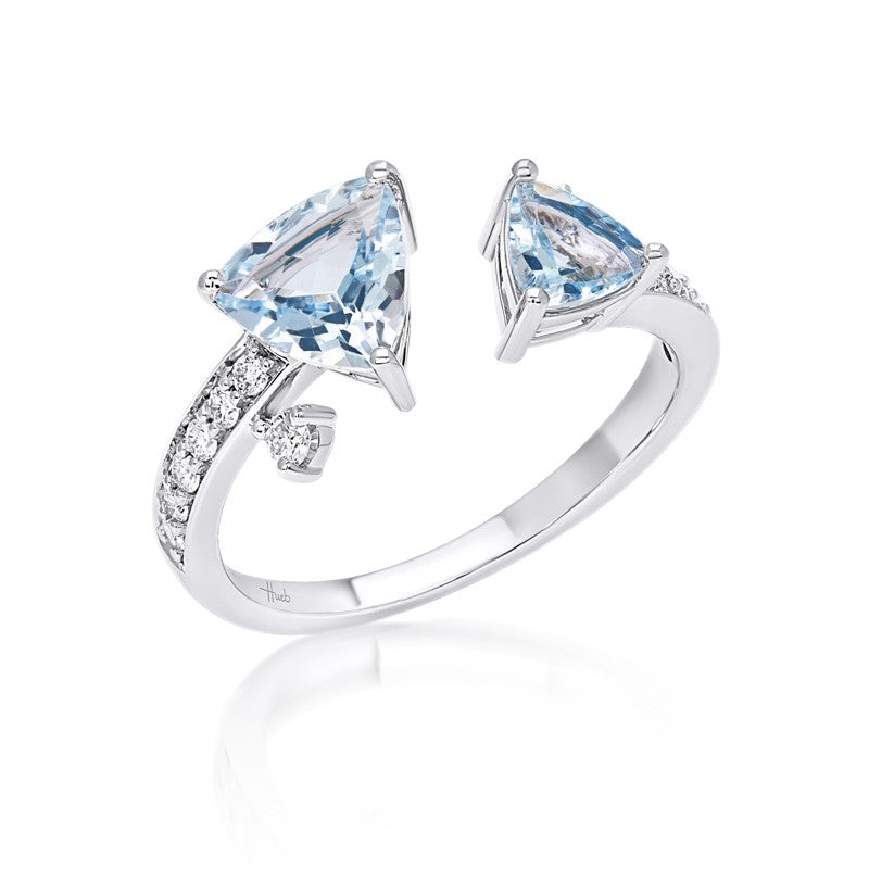 18k Mirage White Gold Ring With 0.20 Cts Vs-Gh Diamonds And Aquamarine