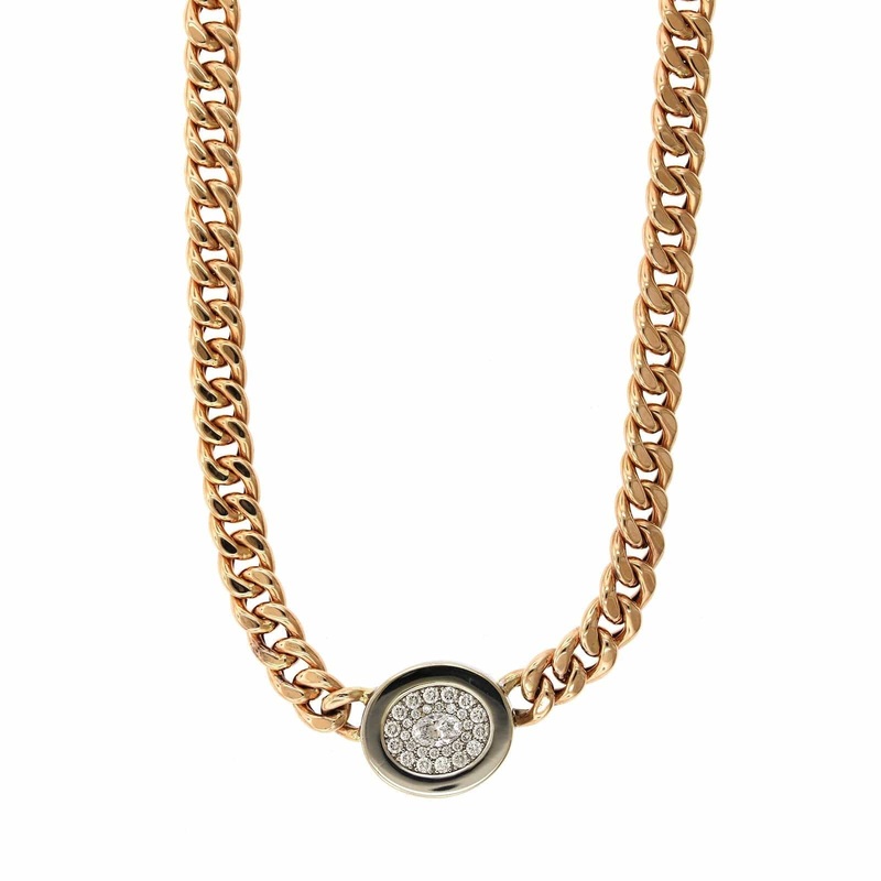 S99320659718K Rose Gold Cuban Link with Pave Diamond Necklace