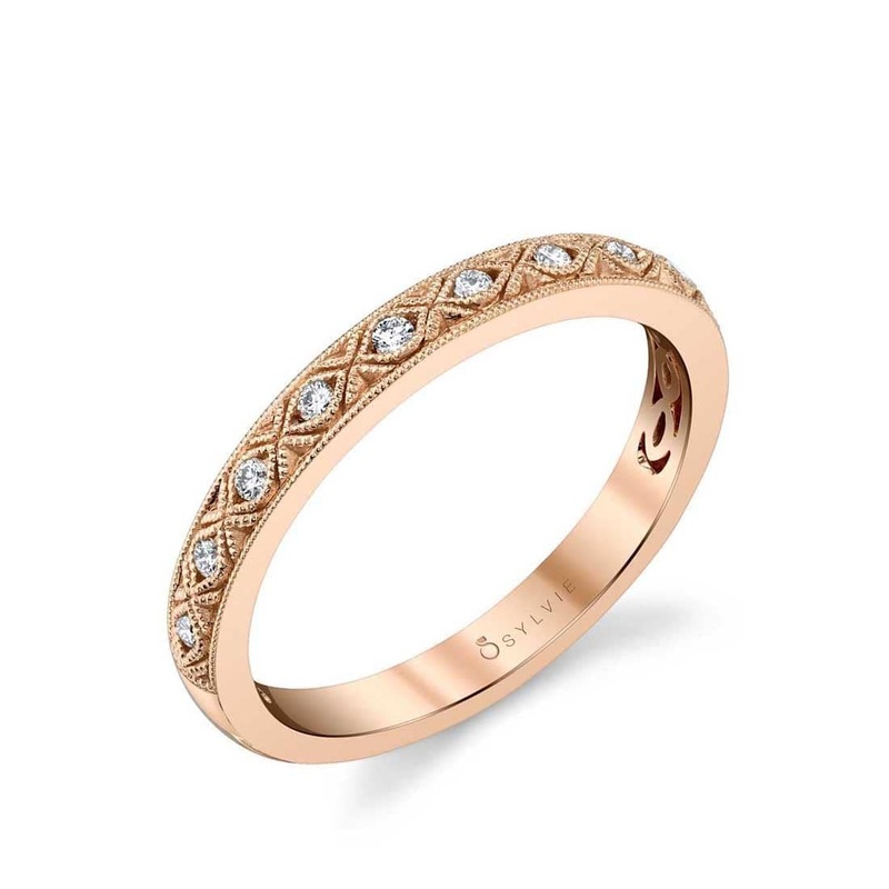 S99321201118K Rose Gold Vintage Inspired Milgrain Wedding Band
