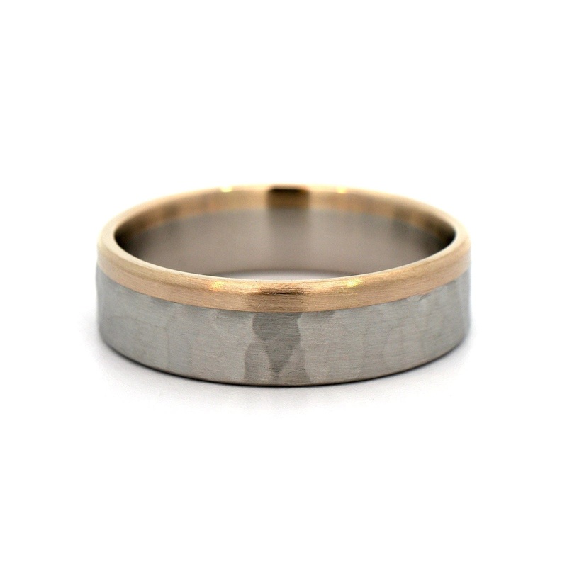 6mm satin finished band with a 18k white gold edge and a platinum edge.