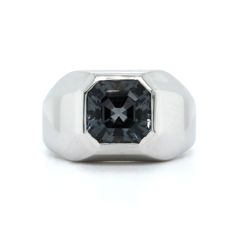 18k white gold heavy bezel setting.