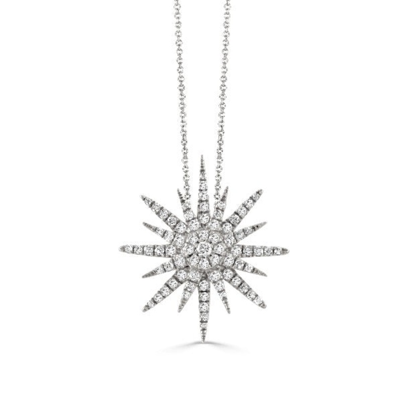 18K white gold pave diamond starburst pendant 0.39cttw. Chain sold separately.
