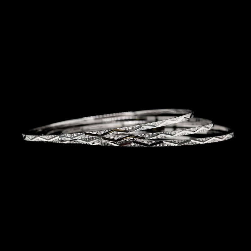 18K White Gold Estate Set of Three Bangle BraceletsInterior circ. 8 3/4"