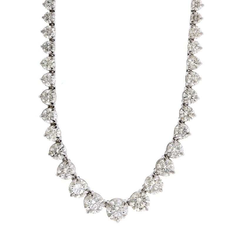 3 prong graduated round cut diamond tennis necklace.